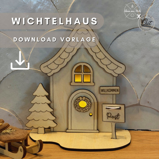 Wichtelhaus mit Beleuchtung SVG Laserdatei