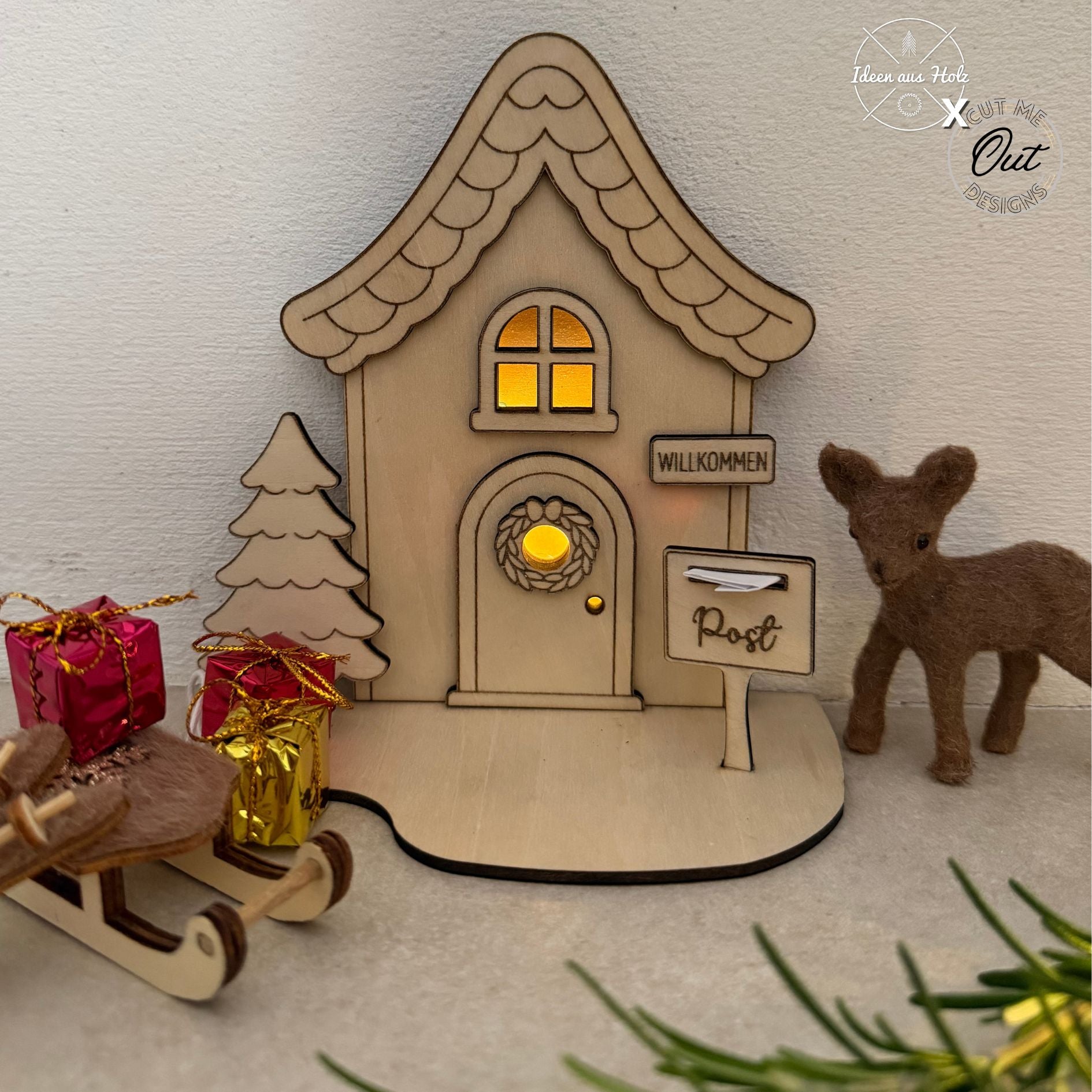 Liebevoll gestaltetes Wichtelhaus mit schönen Details. Geeignet für Sperrholz in verschiedenen Stärken. Kann mit oder ohne Beleuchtung genutzt werden!